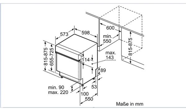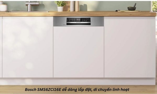 SMI6ZCS16E là mẫu máy rửa chén bát Bosch bán âm (cả âm tủ lẫn độc lập), sở hữu thiết kế sang trọng với kích thước tiêu chuẩn 815 x 598 x 550 mm (Cao x Rộng x Sâu) tương ứng kích thước lắp đặt khuyến nghị là 815 – 875 x 600 x 550 mm