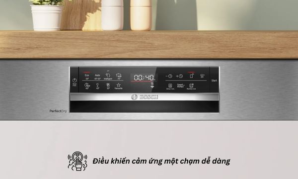 Bosch SMI6ZCS16E mang đến trải nghiệm vận hành hoàn toàn mới với bảng điều khiển cảm ứng sắc nét và các biểu tượng chức năng trực quan. Chỉ cần vài thao tác chạm nhẹ, bạn đã có thể dễ dàng lựa chọn được chương trình rửa phù hợp.