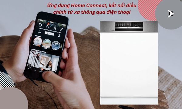 Thêm vào đó, SMI6ZCS16E ứng dụng công nghệ kết nối Home Connect cho phép điều khiển máy rửa bát mọi lúc, mọi nơi thông qua ứng dụng trên điện thoại.