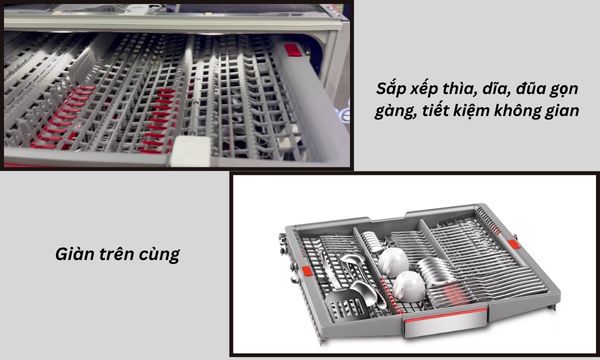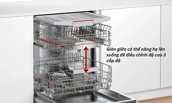 Hệ thống giàn rửa 3 tầng thông minh của máy rửa bát Bosch SMI6ZCS16E mang đến sự linh hoạt tối đa cho người dùng.