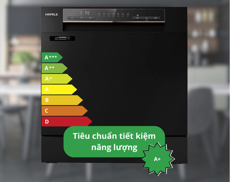 Máy rửa bát này đạt tiêu chuẩn tiết kiệm năng lượng A+ theo tiêu chuẩn Châu Âu, giúp bạn tiết kiệm điện năng và hóa đơn tiền điện hàng tháng. Với mức tiêu thụ điện chỉ 0,815 kWh/ lần rửa và 0,0138 kWh/ giờ khi sử dụng tính năng làm tươi và khô trong 72 giờ, máy rửa bát Hafele không chỉ hiệu quả về mặt chức năng mà còn bền vững về mặt môi trường.