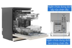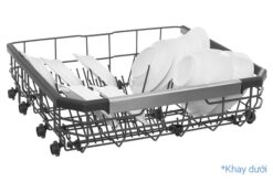 – Khay dao muỗng: Có thể kéo ra, đẩy vào giúp bạn dễ dàng phân loại và rửa các vật dụng nhỏ như dao, muỗng đũa được hiệu quả hơn.