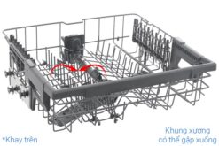 – Máy rửa bát LG này được thiết kế bên trong gồm có 3 khay rửa: khay dao muỗng, khay trên và khay dưới.