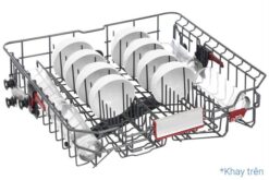 Việc bố trí ba giàn riêng biệt không chỉ giúp phân loại đồ dùng dễ dàng, mà còn ngăn ngừa va chạm, trầy xước, đảm bảo tất cả bát đĩa được rửa sạch kỹ càng mà vẫn giữ nguyên chất lượng và độ bền.