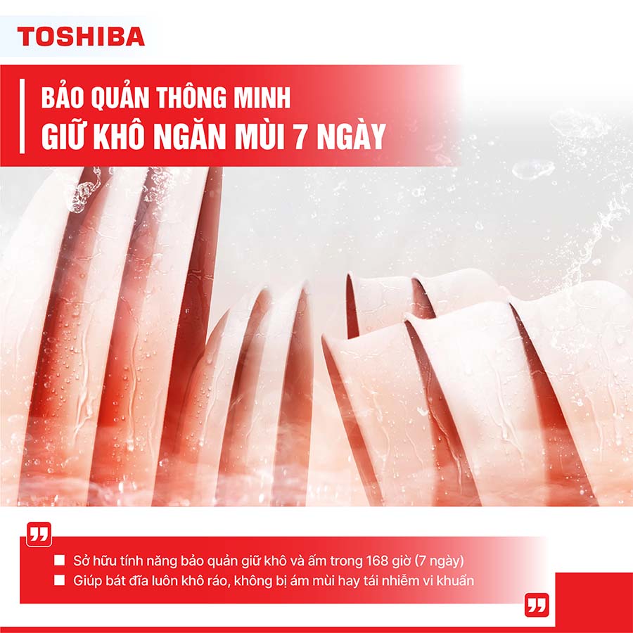 Không chỉ làm sạch và sấy khô, máy rửa bát Toshiba DW-15F7(G)-VN còn nổi bật với khả năng bảo quản bát đĩa luôn khô ráo, sạch sẽ suốt 168 giờ (7 ngày) một tính năng cực kỳ hữu ích cho những gia đình không thường xuyên lấy đồ dùng ra ngay sau khi rửa.