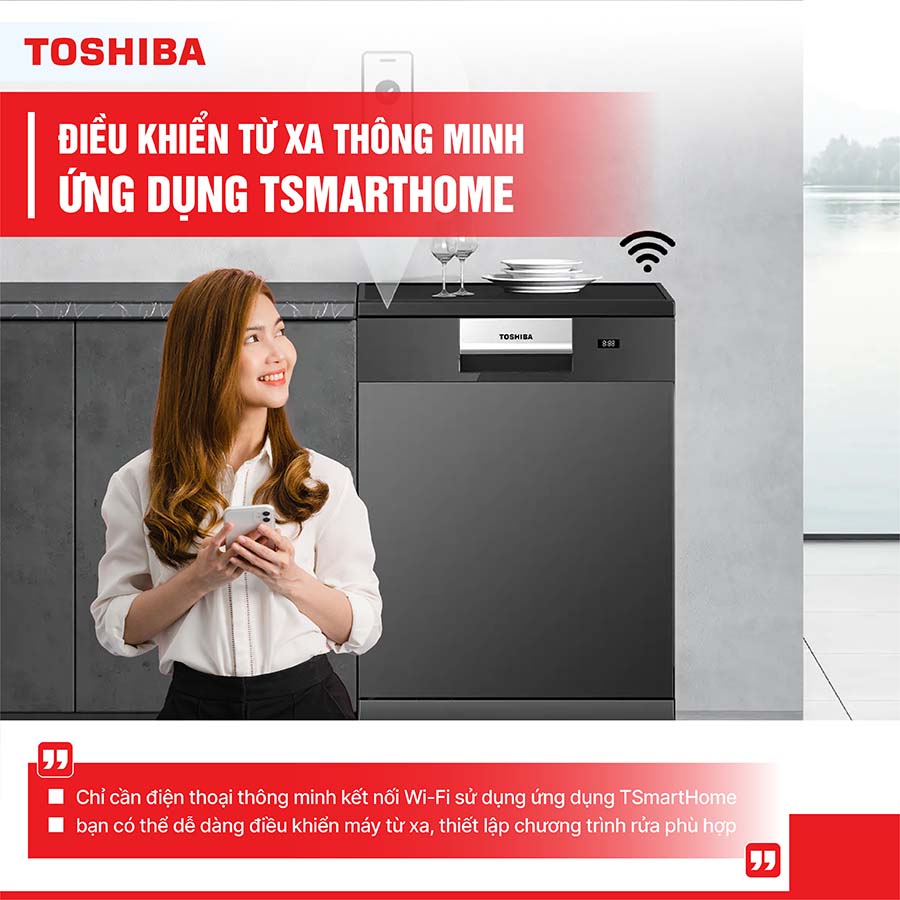 Trong thời đại công nghệ số, sự tiện lợi và kết nối thông minh đang trở thành tiêu chí lựa chọn hàng đầu đối với các thiết bị gia dụng. Hiểu được điều đó, máy rửa bát Toshiba OriginClean™ được tích hợp công nghệ iOT hiện đại, cho phép kết nối từ xa qua ứng dụng TSmartHome, mang lại trải nghiệm sử dụng linh hoạt và chủ động hơn bao giờ hết.