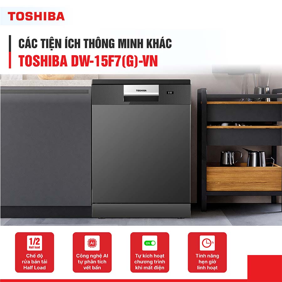 Tổng thể, thiết kế của Toshiba DW-15F7(G)-VN không chỉ làm hài lòng những ai yêu thích phong cách sống tối giản mà còn đủ đẳng cấp để tạo điểm nhấn thẩm mỹ trong gian bếp hiện đại, xứng đáng là một lựa chọn lý tưởng cho người dùng quan tâm đến cả công năng lẫn giá trị thiết kế.