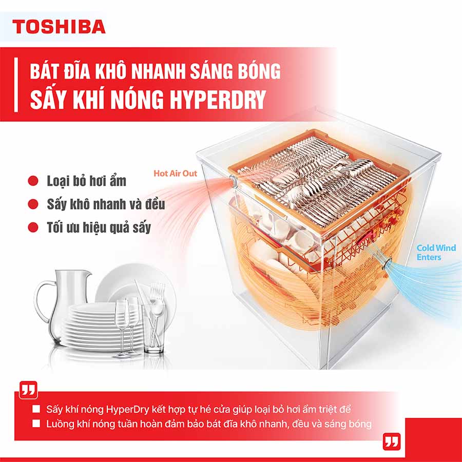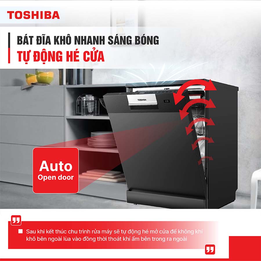 Không chỉ làm sạch hiệu quả, Toshiba DW-15F7(G)-VN còn sở hữu khả năng sấy khô bát đĩa tối ưu nhờ công nghệ HyperDry kết hợp tự hé cửa thông minh mang lại trải nghiệm tiện nghi và sạch sẽ đúng chuẩn cao cấp.