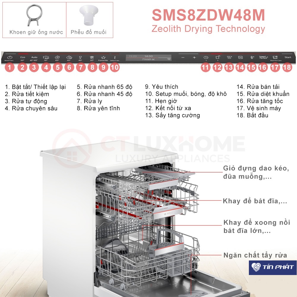 Đặc điểm nổi bật của MÁY RỬA BÁT ĐỘC LẬP BOSCH SMS8ZDW48M SERIE 8 SẤY ZEOLITH