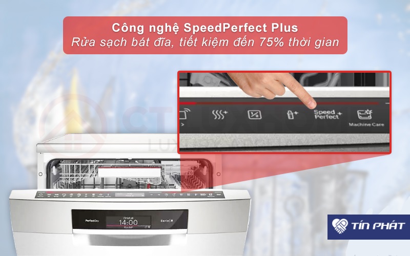 Khi kết hợp tính năng SpeedPerfect Plus với 1 chương trình cơ bản bất kỳ sẽ tiết kiệm thời gian rửa lên đến 75%. Giúp người dùng có thể tiết kiệm thời gian hơn khi cần rửa để dùng bát đũa gấp nhưng vẫn đảm bảo chất lượng rửa.