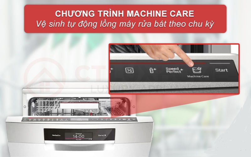 Vệ sinh máy rửa bát Bosch SMS8ZDW48M tự động với tính năng Machine Care