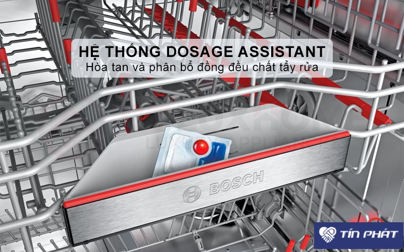 Hệ thống Dosage Assistant ở đầu giàn giữa của máy, giúp hòa tan lượng chất tẩy rửa và phân bổ đều đến khắp khoang máy, giúp tối ưu và tiết kiệm được lượng chất tẩy rửa cần dùng.