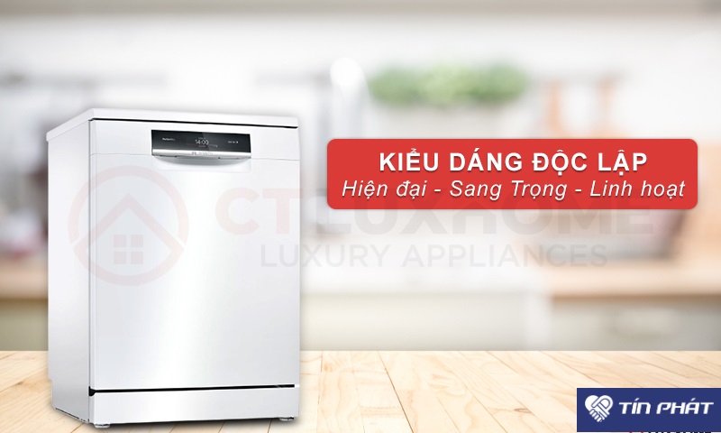 Máy rửa bát Bosch SMS8ZDW48M serie 8 thiết kế độc lập giúp cho việc lắp đặt trở nên linh hoạt hơn, người dùng có thể để độc lập hoặc âm tủ.