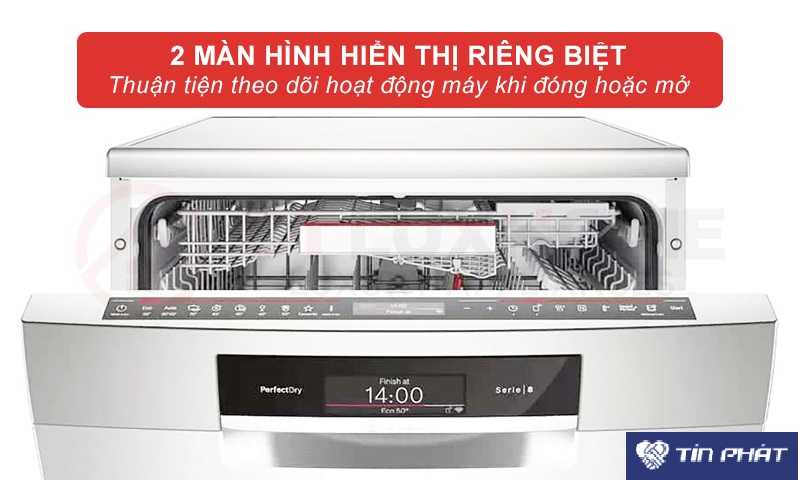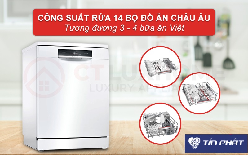 Máy rửa bát Bosch SMS8ZDW48M serie 8 dung tích rửa lớn, công suất rửa lên đến 14 bộ đồ ăn Châu Âu tương đương với 2 mâm cỗ Việt, phù hợp với gia đình 4-6 người.