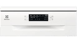 Máy rửa bát Electrolux UltimateCare 300 (ESA47200SW) sở hữu vẻ ngoài tinh tế với gam màu trắng trang nhã, phù hợp với mọi phong cách nội thất bếp hiện đại. Sản phẩm có kích thước chuẩn 598 × 622 × 850 mm (Rộng × Sâu × Cao), dễ dàng lắp đặt vào các hốc tủ hoặc vị trí tiêu chuẩn trong bếp, tạo nên tổng thể gọn gàng, tiết kiệm diện tích. Mặt trước máy nổi bật với bảng điều khiển dạng nút bấm tinh xảo kết hợp màn hình LED sắc nét, giúp người dùng dễ dàng theo dõi và điều chỉnh chu trình rửa từ khi bắt đầu đến khi hoàn tất.