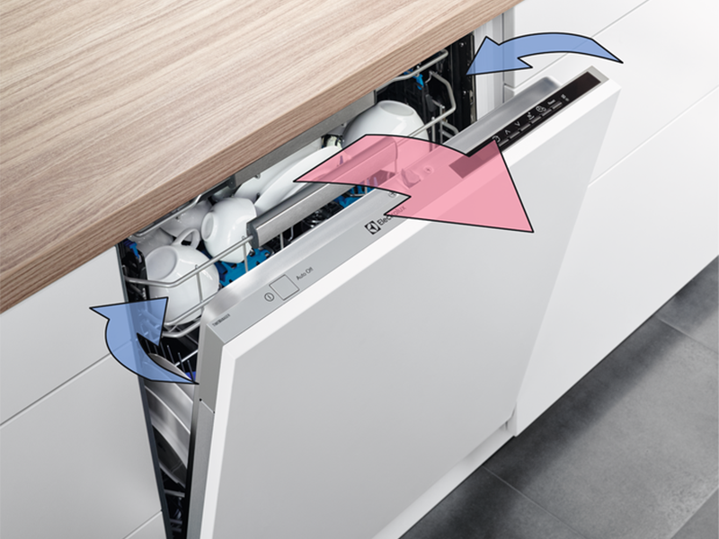 Sau khi hoàn tất chu trình rửa, Electrolux Ultimate Care 300 (ESA47200SX) sẽ tự động hé cửa khoảng 10cm, cho phép luồng khí tự nhiên lưu thông vào khoang máy. Nhờ cơ chế này, bát đĩa được sấy khô nhanh chóng và hiệu quả hơn gấp ba lần so với phương pháp sấy kín thông thường. Không chỉ giúp đồ dùng khô hoàn toàn mà còn sáng bóng, không đọng nước, không ám mùi, đặc biệt là không cần dùng thêm nhiệt điện, góp phần tiết kiệm năng lượng đáng kể.