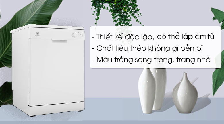 Máy rửa bát Electrolux ESF5206LOW 1950W có thiết kế góc cạnh tinh tế, với màu trắng sang trọng, chắc chắn sẽ làm nổi bật không gian nhà bếp của bạn. Ngoài ra sản phẩm được thiết kế độc lập gọn gàng nên linh hoạt cho việc bố trí ở mọi không gian bếp nhà bạn như lắp vào hộc tủ dưới kệ bếp (không lắp âm vào tường), để trên mặt bếp tiện lợi.