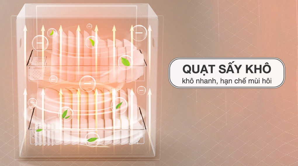 – Chức năng sấy khô bằng hệ thống quạt chuyên dụng Turbo Fan giúp chén bát được khô hơn, hạn chế mùi hôi sau khi rửa, quạt sấy hoàn toàn an toàn và thân thiện với môi trường.