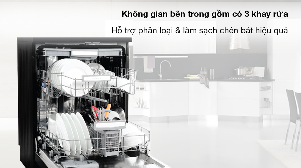 Máy rửa chén Hafele này được thiết kế bên trong gồm có 3 khay rửa: khay dao kéo, khay trên và khay dưới đều có thể kéo ra vào linh hoạt, nhờ đó thuận tiện cho bạn mỗi khi thao tác.