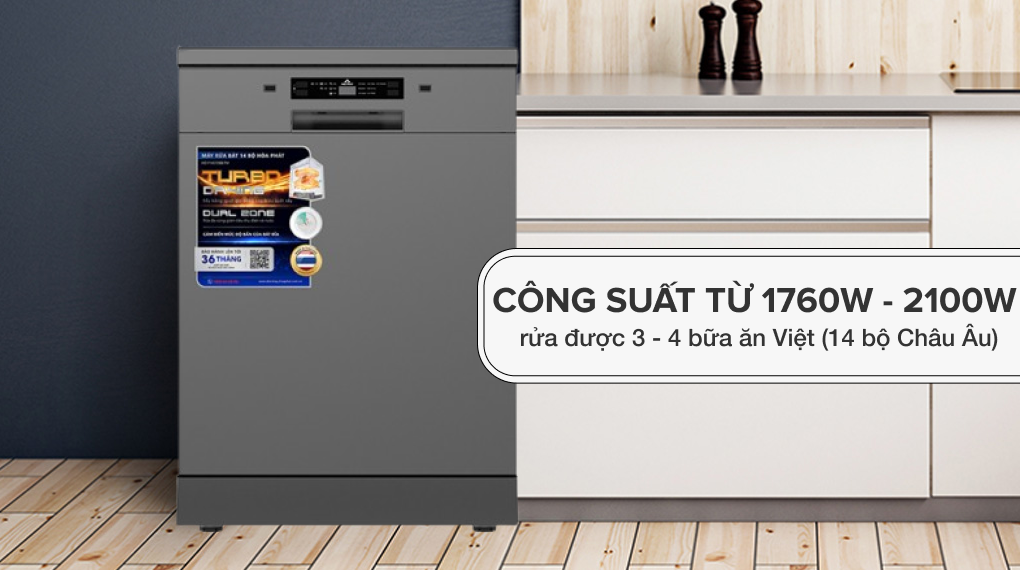 Máy rửa chén độc lập Hòa Phát HD F1407DBB TM hoạt động với công suất mạnh mẽ từ 1760W – 2100W, bảng điều khiển nút nhấn, có màn hình hiển thị và nhiều chương trình rửa linh hoạt. Trang bị công nghệ rửa nước nóng, công nghệ sấy nhiệt dư giúp làm sạch chén bát hiệu quả, diệt khuẩn, đảm bảo an toàn sức khỏe cho cả gia đình.