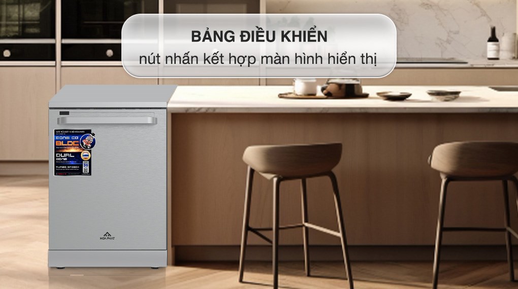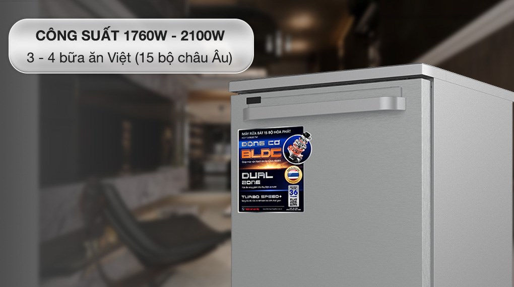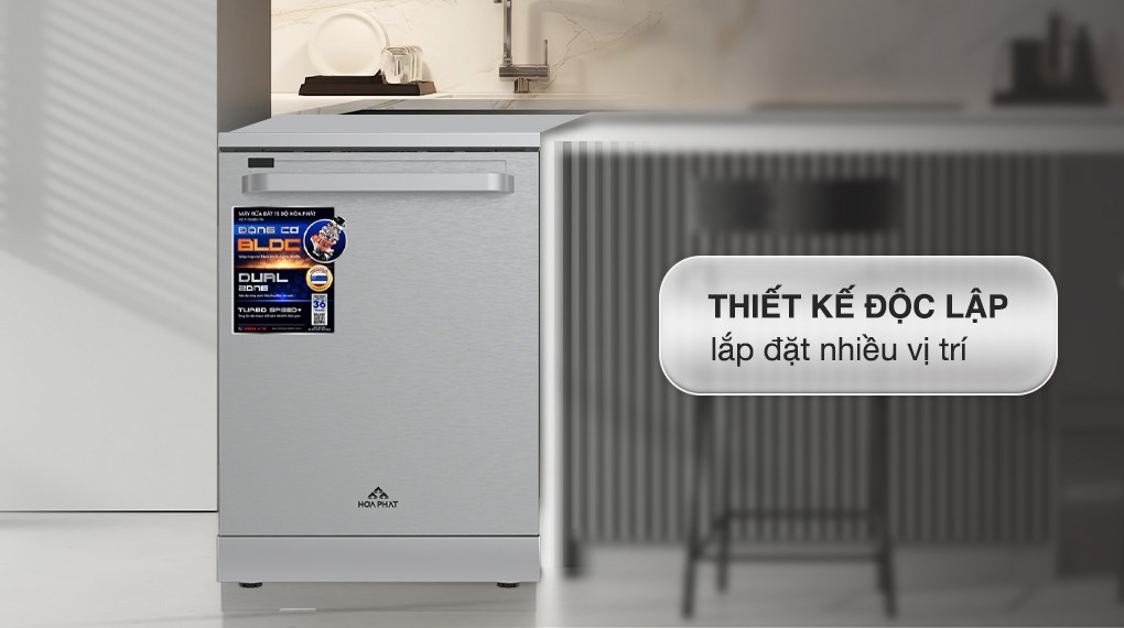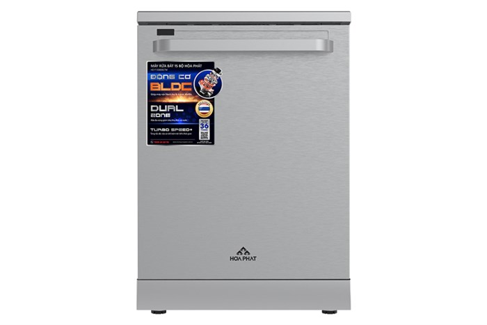 Máy rửa chén độc lập Hòa Phát HD F1508EBS TM tích hợp 8 chương trình đa dạng với nhu cầu rửa hàng ngày, công suất hoạt động 1760W – 2100W rửa được 3 – 4 bữa ăn Việt (15 bộ Châu Âu), trang bị công nghệ rửa nước nóng, tiết kiệm 50% thời gian rửa với Turbo Speed+.