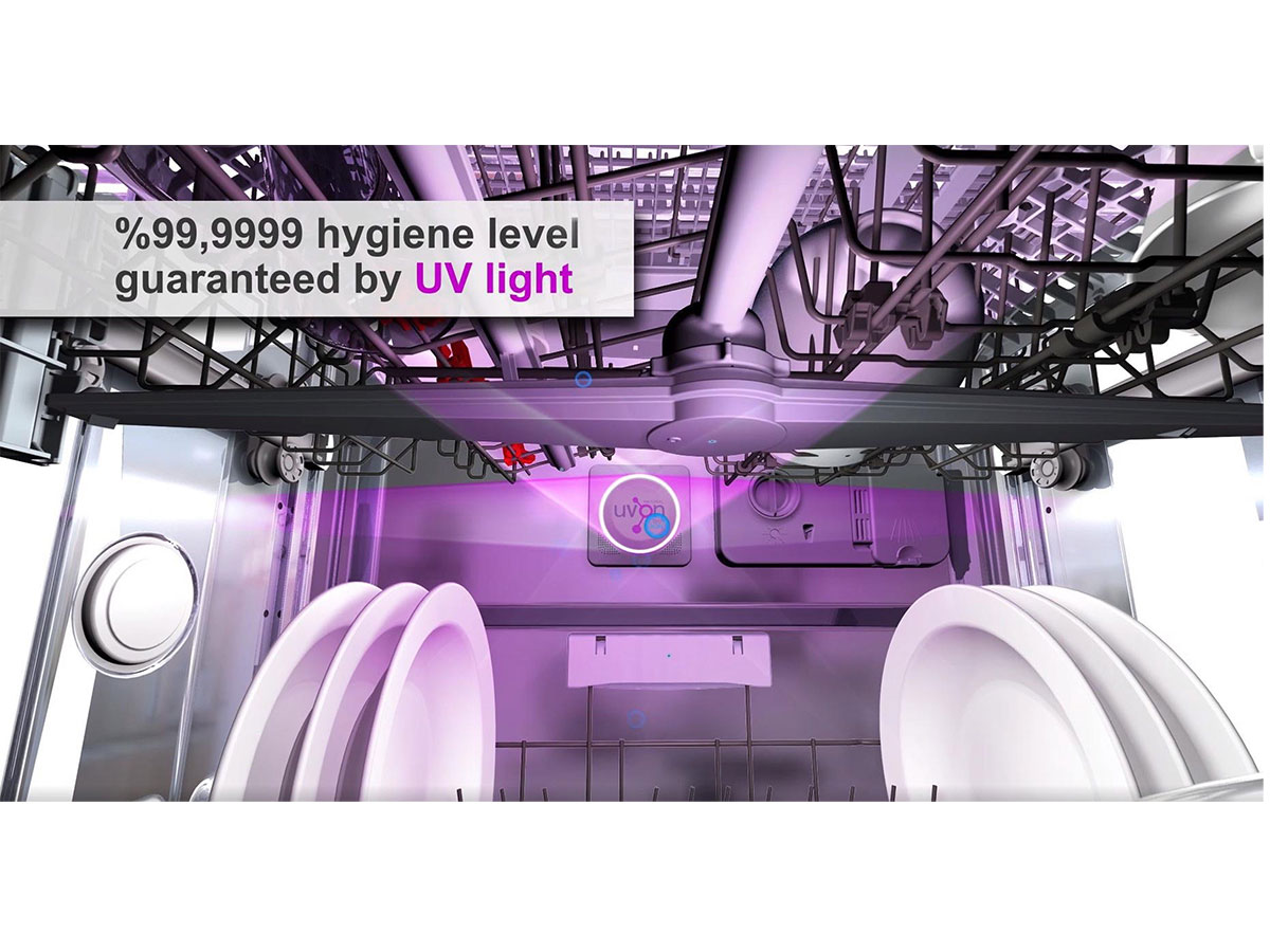 Máy còn tích hợp chức năng diệt khuẩn UVON và ION giúp tiêu diệt tới 99,99% vi khuẩn, đảm bảo bát đĩa luôn sạch sẽ và an toàn cho sức khỏe người dùng. Đây là một tính năng rất quan trọng, đặc biệt đối với những gia đình có trẻ nhỏ hoặc người dễ bị dị ứng.