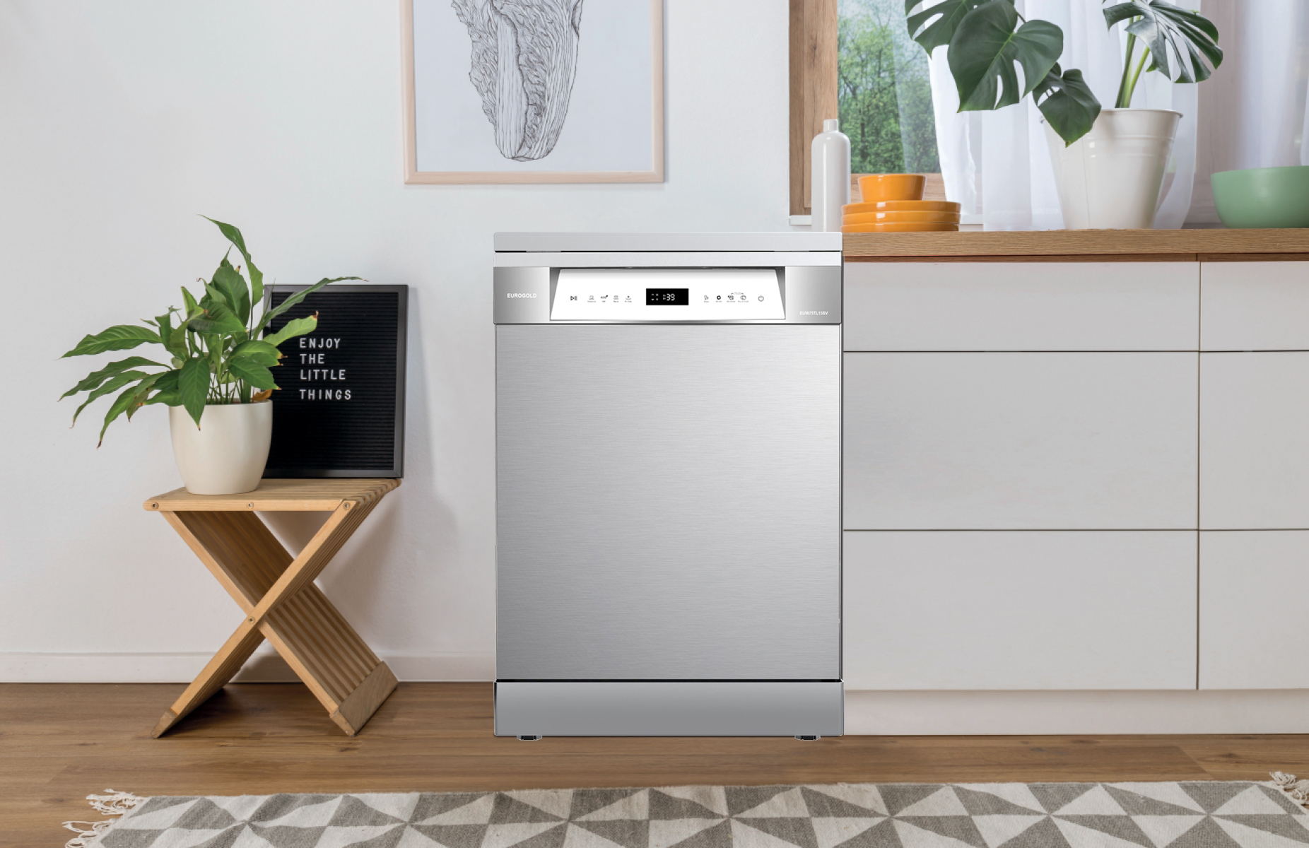 Máy rửa bát Eurogold EUW75TL15SV được thiết kế dạng độc lập, tách rời. Người dùng có thể linh hoạt đặt trên mặt sàn hoặc lắp âm tủ đều được. Tuy nhiên, nếu muốn lắp đặt âm thì cần phải đảm bảo diện tích khoang tủ lớn hơn kích cỡ của máy, để dễ dàng sử dụng và vệ sinh.