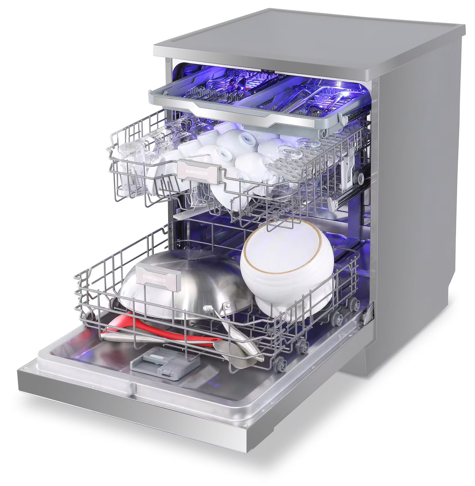 Máy rửa bát 15 bộ Eurogold EUW75TL15SV có nhiều điểm ấn tượng, độc đáo và mới lạ hơn so với nhiều loại máy rửa bát thông thường. Chất liệu của máy là thép không gỉ, bền chắc, toàn thể máy sử dụng tông màu bạc bóng sạch, đẹp tạo cảm giác sang trọng và hiện đại.