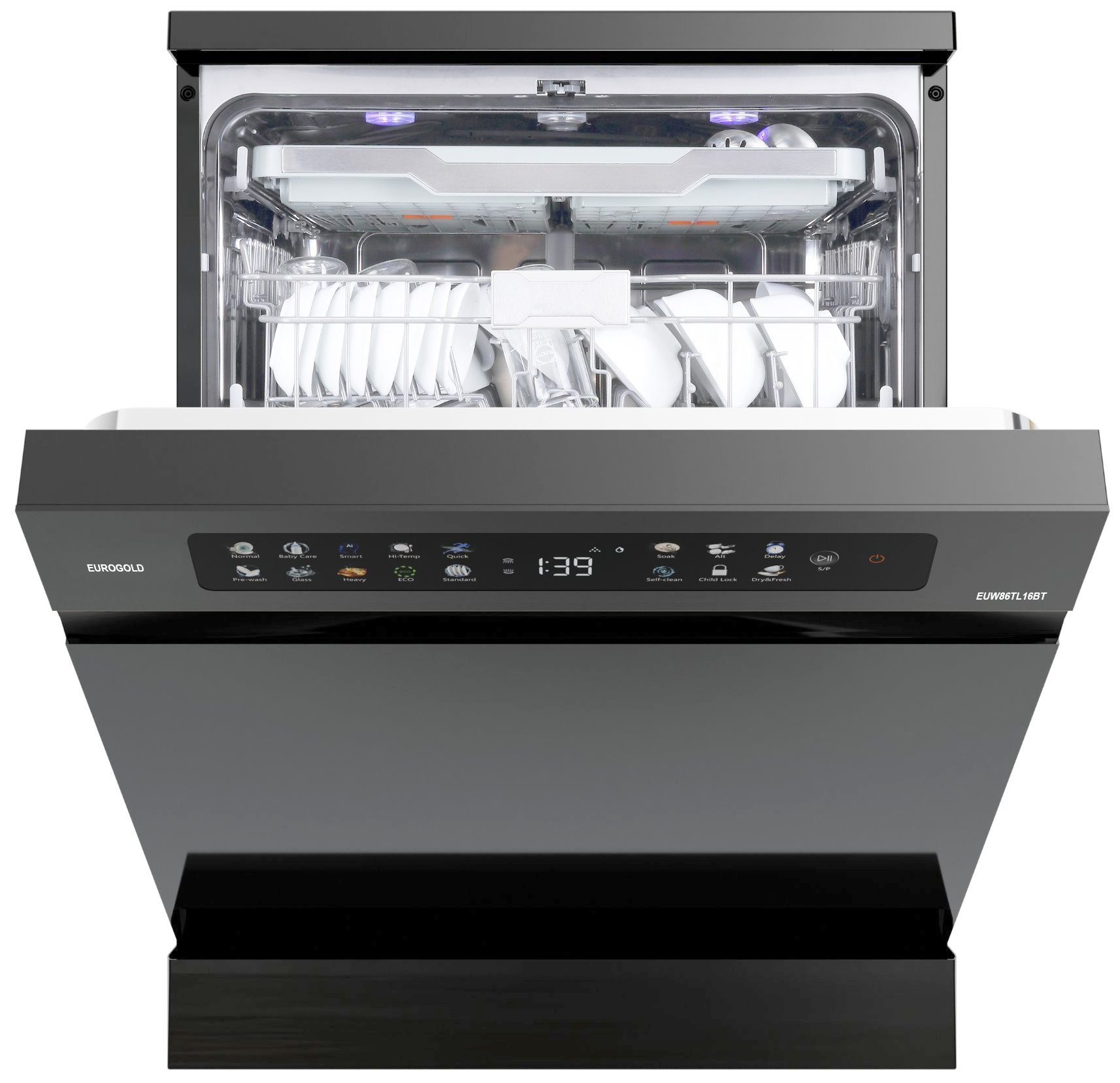 Tăng tính thẩm mỹ cho gian bếp gia đình: Thiết kế sang trọng, hiện đại máy rửa bát 15 bộ Eurogold EUW86TL16BT dễ dàng chinh phục được mọi không gian bếp. Màu xám bóng, tinh tế tới từng chi tiết, không khó để tạo điểm nhấn nổi bật.