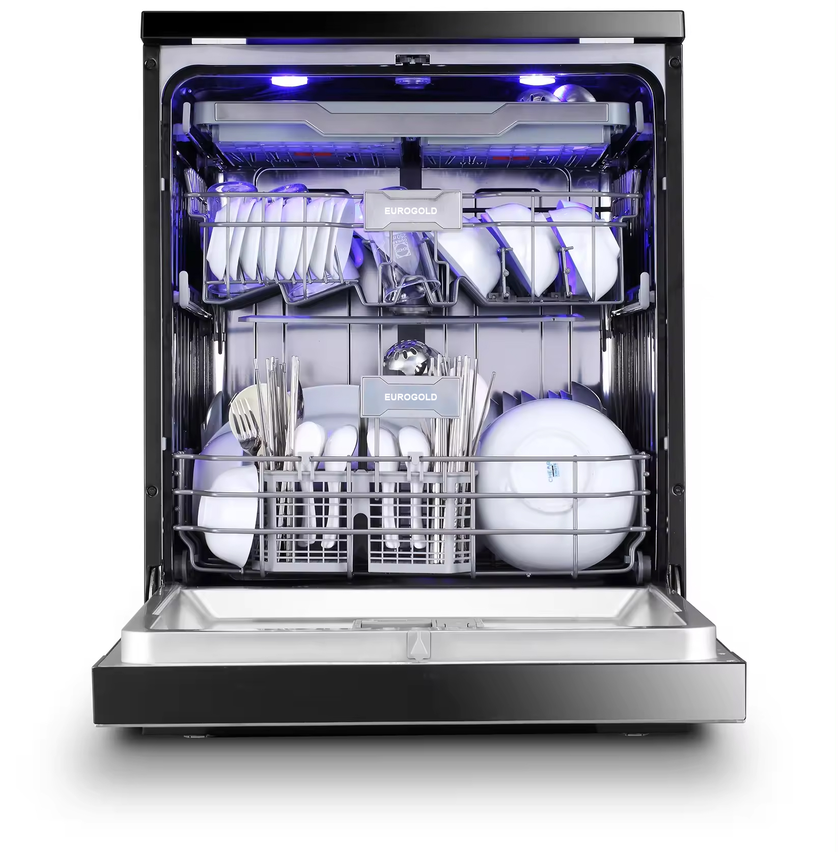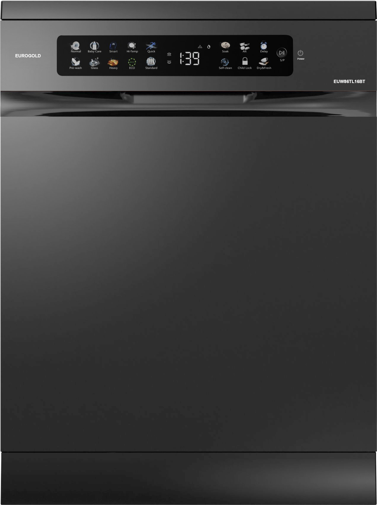 Máy rửa bát Eurogold EUW86TL16BT có công suất tiêu thụ 1750W, lượng nước tiêu thụ khoảng 4-9 lít/1 lần rửa, cho phép rửa 15 bộ bát đĩa Châu Âu tương đương với 1-2 bữa ăn Việt (gia đình 4-6 thành viên). Máy trang bị 12 chương trình rửa được tùy chỉnh dễ dàng trên bảng điều khiển điện tử kết hợp màn hình LED.