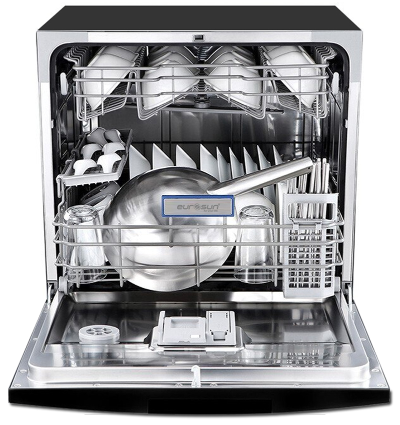 Thiết kế bên trong gồm hai khay chứa đồ cơ động và một ngăn giỏ để dao kéo hoặc để đũa, dung tích của máy có thể chứa tới 10 bộ bát đĩa. Khay xếp bát đĩa đã được Eurosun nghiên cứu và thiết kế chuyên dụng dành riêng cho thị trường Châu Á chắc chắn và dễ sử dụng. Hệ thống khay rửa (giàn rửa) có thể kéo ra dễ dàng rất thuận tiện cho việc sắp xếp đồ vào máy.