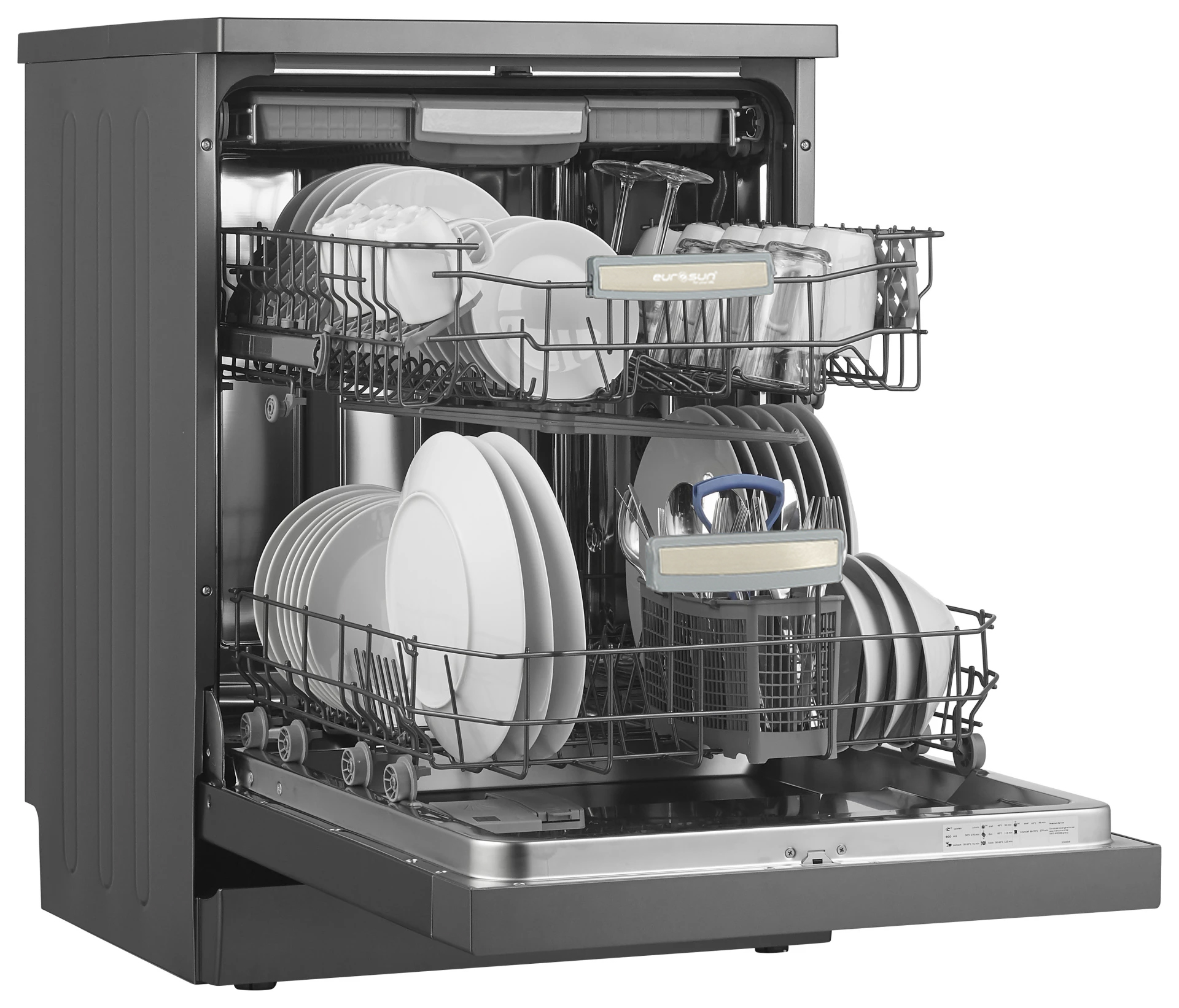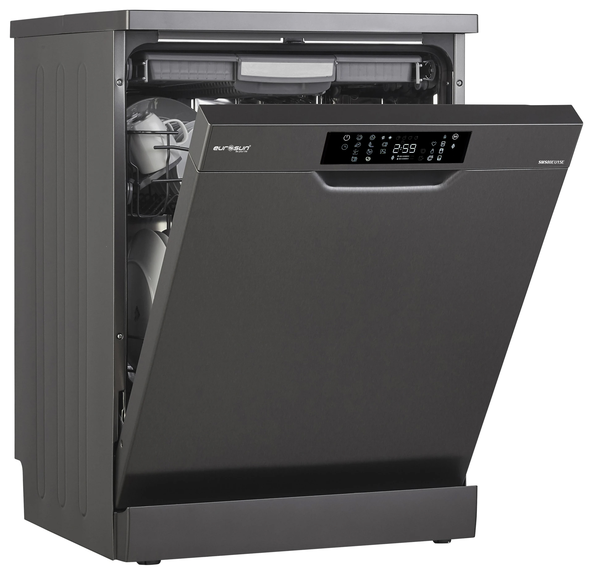 Máy rửa bát 14 bộ Eurosun SMS80EU15E có nhiều điểm ấn tượng, độc đáo và mới lạ hơn so với nhiều loại máy rửa bát thông thường. Chất liệu của máy là thép không gỉ, bền chắc, toàn thể máy sử dụng tông màu inox đen sạch, đẹp tạo cảm giác sang trọng, hiện đại và mát mẻ.