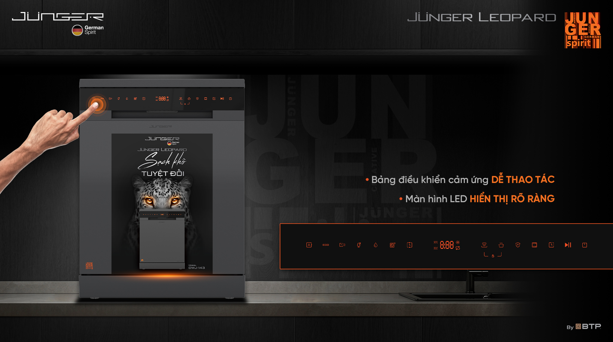 Không chỉ kế thừa tinh hoa của những dòng máy rửa bát truyền thống, Junger Leopard DWJ-143 “Sạch khô tuyệt đối” cải tiến mạnh mẽ bằng việc ứng dụng công nghệ hiện đại như ghi nhớ chương trình khi mất điện, báo hết muối và chất trợ rửa, chống tràn rò rỉ nước, khóa trẻ em bảo vệ an toàn,… hứa hẹn trở thành người trợ lý tuyệt vời cho căn bếp của bạn.