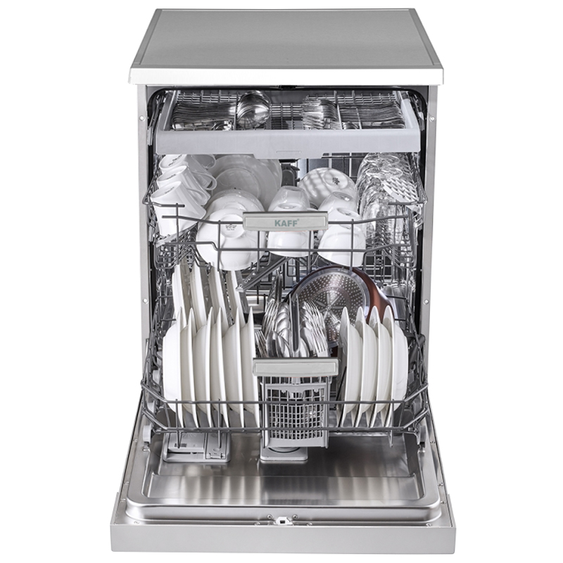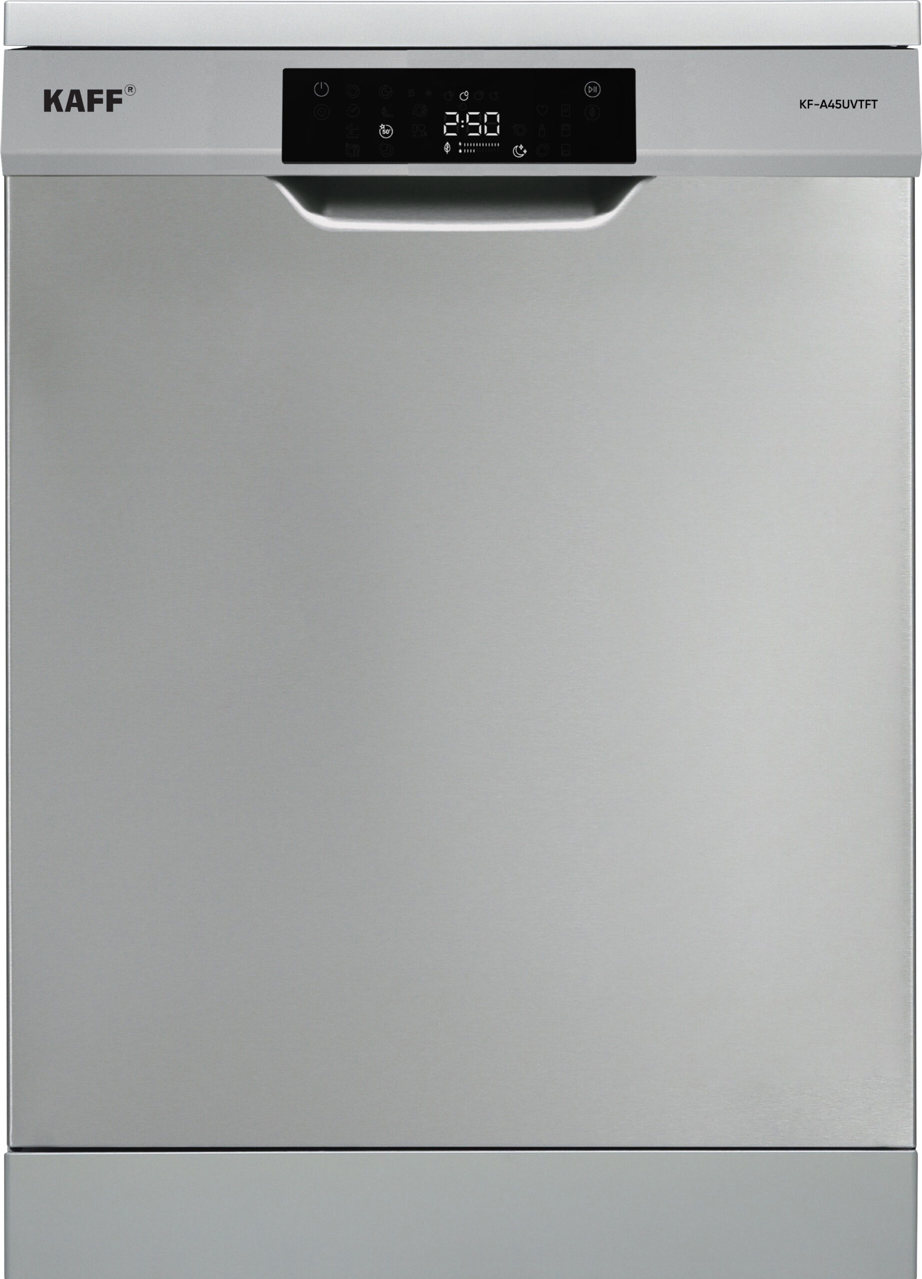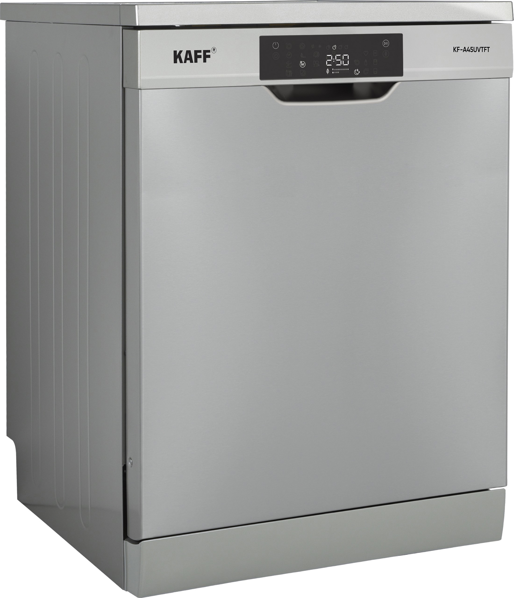 Máy rửa bát Kaff KF-A45UVTFT có công suất tiêu thụ là 1900W, lượng nước tiêu thụ là 5.4-9 lít/1 lần rửa, cho phép rửa 15 bộ bát đĩa Châu Âu tương đương với 1,5-2 bữa ăn Việt (gia đình 4-6 thành viên). Máy trang bị 10 chương trình rửa được tùy chỉnh dễ dàng trên bảng điều khiển điện tử kết hợp màn hình LED.