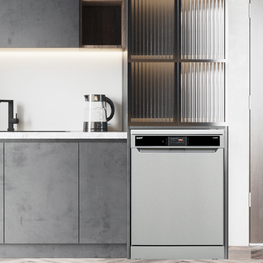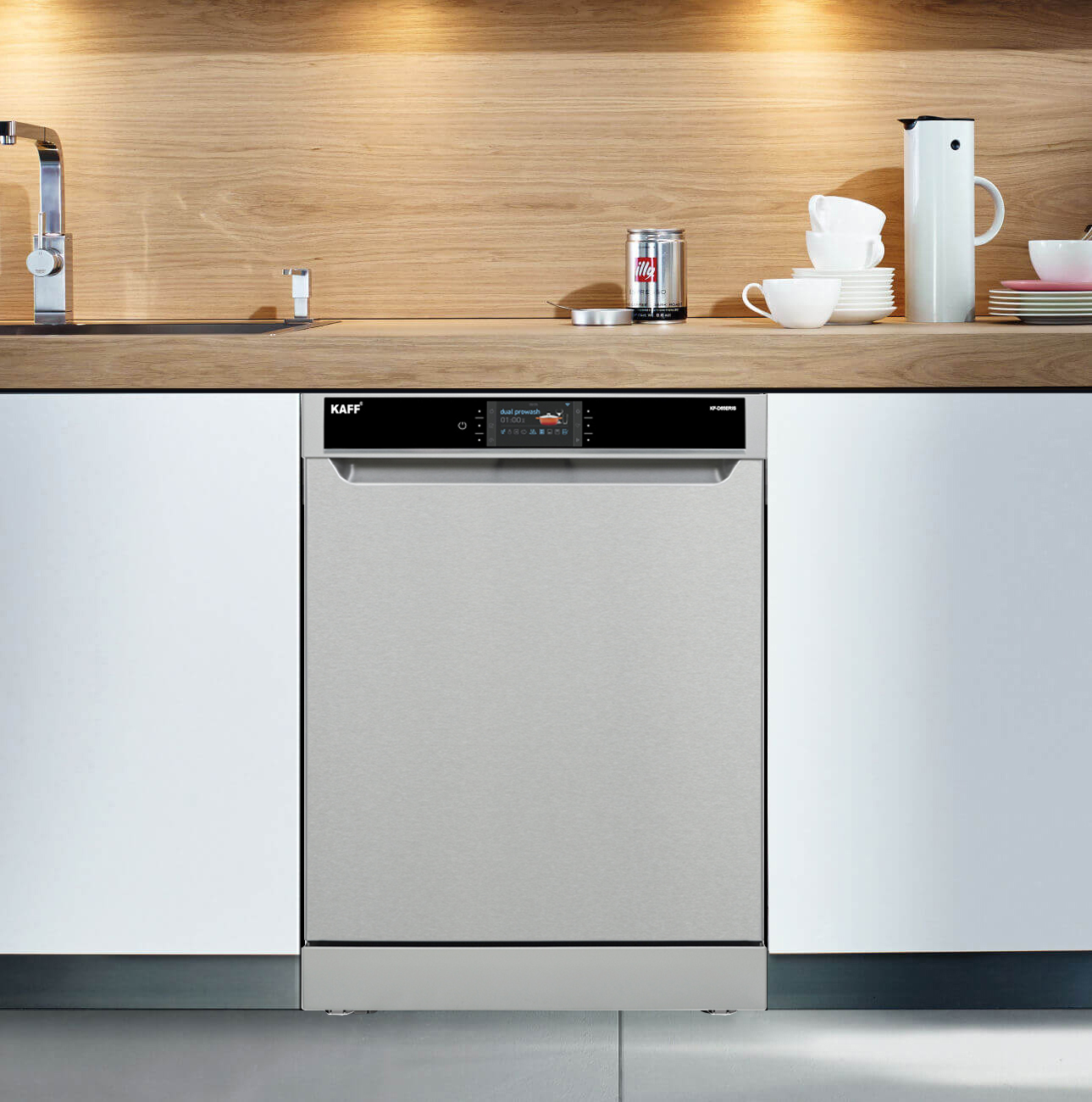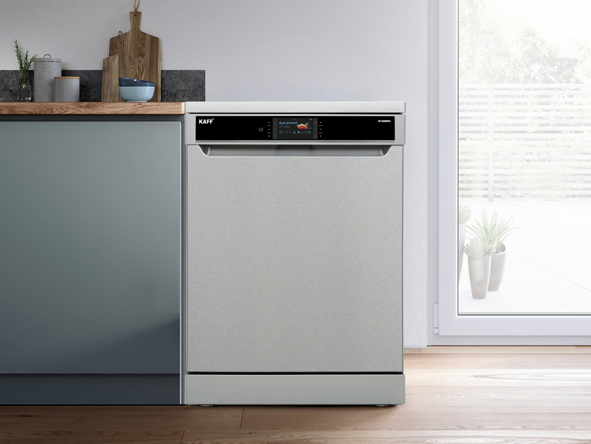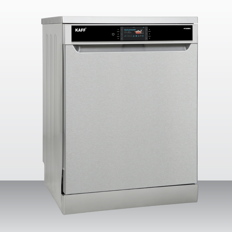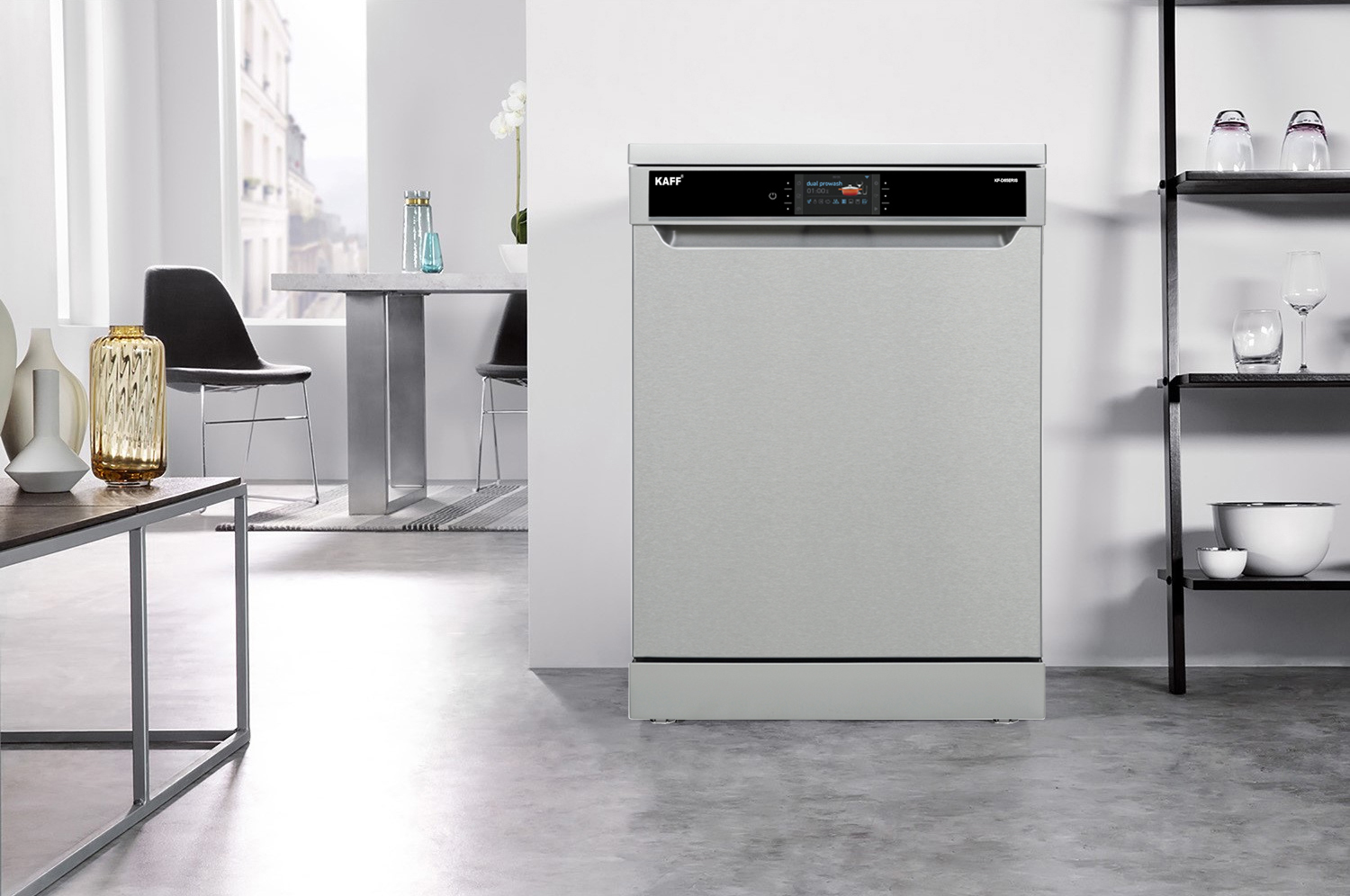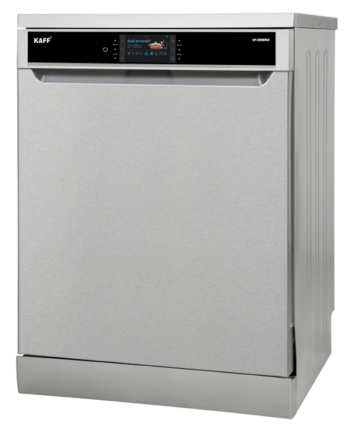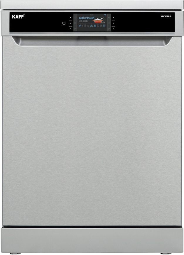 Máy rửa bát 15 bộ Kaff KF-D65ERIS có nhiều điểm ấn tượng, độc đáo và mới lạ hơn so với nhiều loại máy rửa bát thông thường. Chất liệu của máy là thép không gỉ, bền chắc, toàn thể máy sử dụng tông màu bạc sạch, đẹp tạo cảm giác sang trọng, hiện đại và mát mẻ.