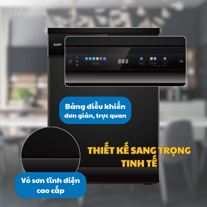 Máy rửa chén Kaff KF-BHMI775YB là một sản phẩm cao cấp, tích hợp nhiều chức năng hiện đại và tiện nghi, giúp mang lại cho bạn trải nghiệm rửa chén sạch, an toàn và tiết kiệm năng lượng. Với thiết kế thân sơn tĩnh điện màu đen cao cấp, máy rửa chén này có thể tích hợp vào không gian bếp của bạn một cách tiện lợi.