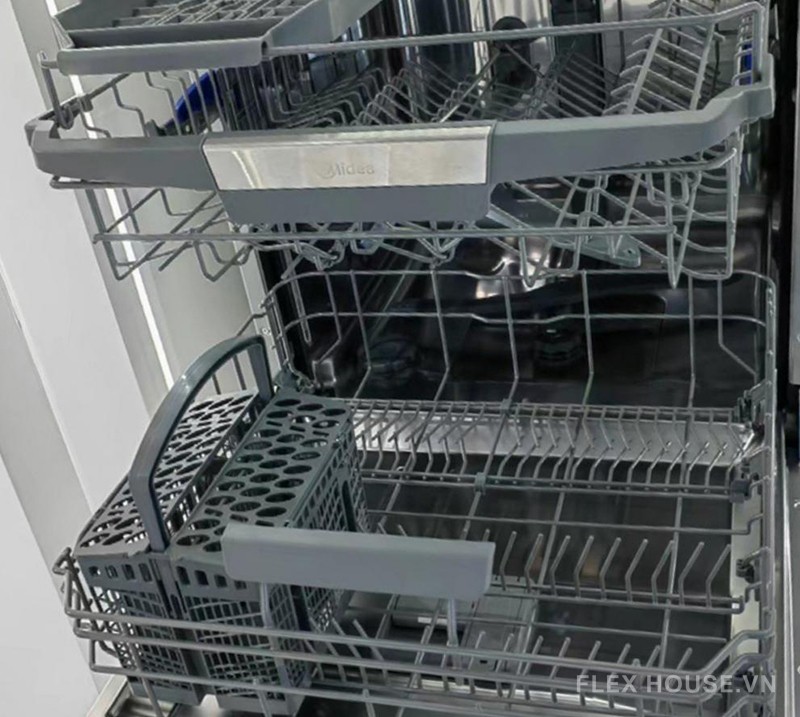 Máy rửa bát KF-BHMI775YS tích hợp 8 chương trình rửa đa dạng, bao gồm rửa thông minh (Smart Washing Auto) giúp tự động điều chỉnh lượng nước và thời gian rửa theo mức độ bẩn của chén bát, rửa kỹ (Intensive Wash) dành cho những vết dầu mỡ cứng đầu, rửa tiết kiệm (ECO Wash) giúp giảm thiểu tiêu thụ nước và điện năng, rửa ly (Glass Wash) bảo vệ ly thủy tinh mỏng manh, rửa nhanh (Rapid Wash) cho những lúc cần gấp, cùng với rửa hoa quả (Fruit and Vegetable Wash) đảm bảo vệ sinh thực phẩm. Đặc biệt, máy còn có chế độ rửa nửa tải (Half Load) giúp tiết kiệm khi không cần rửa đầy tải và chế độ tự làm sạch máy (Self Cleaning) ngăn ngừa vi khuẩn phát triển.