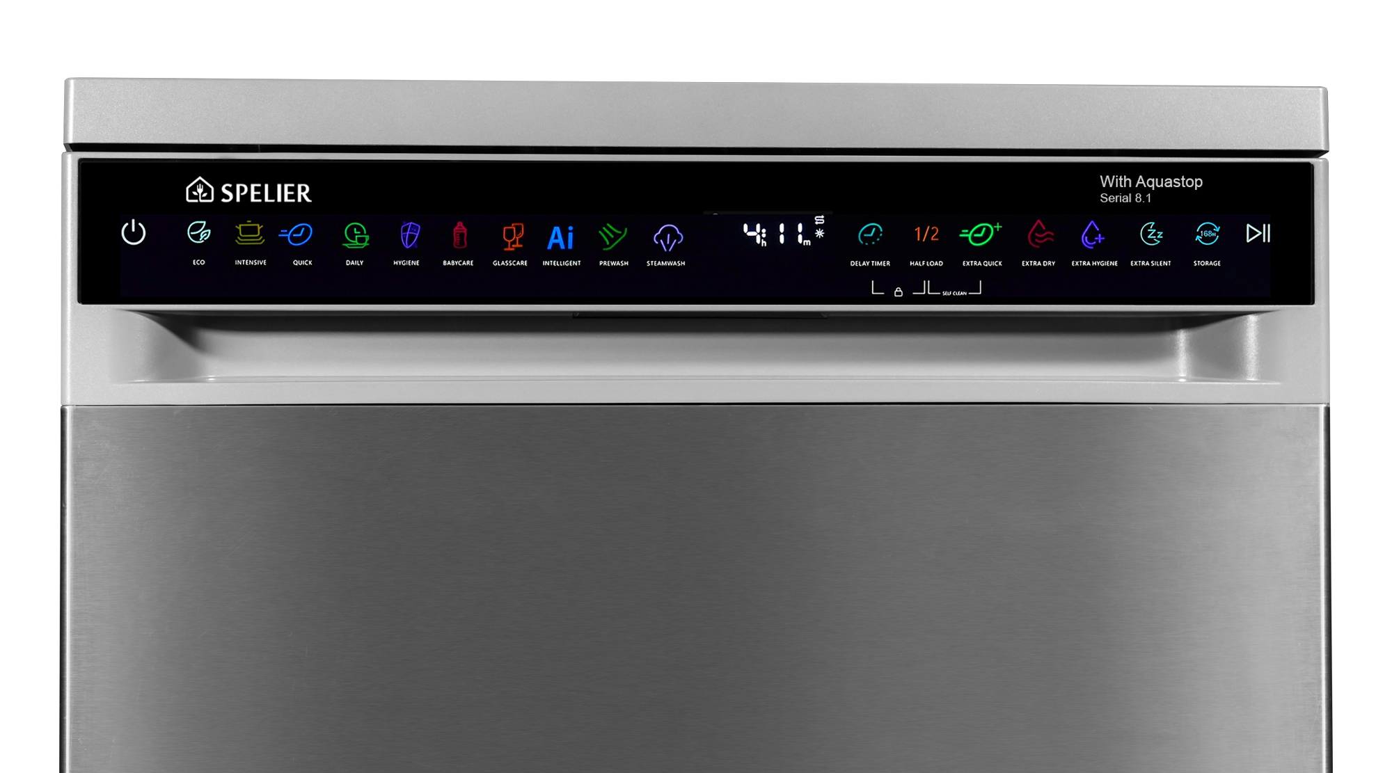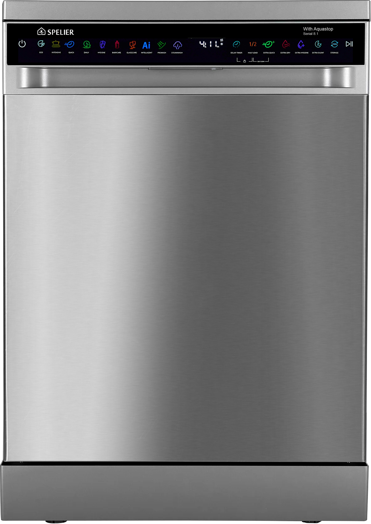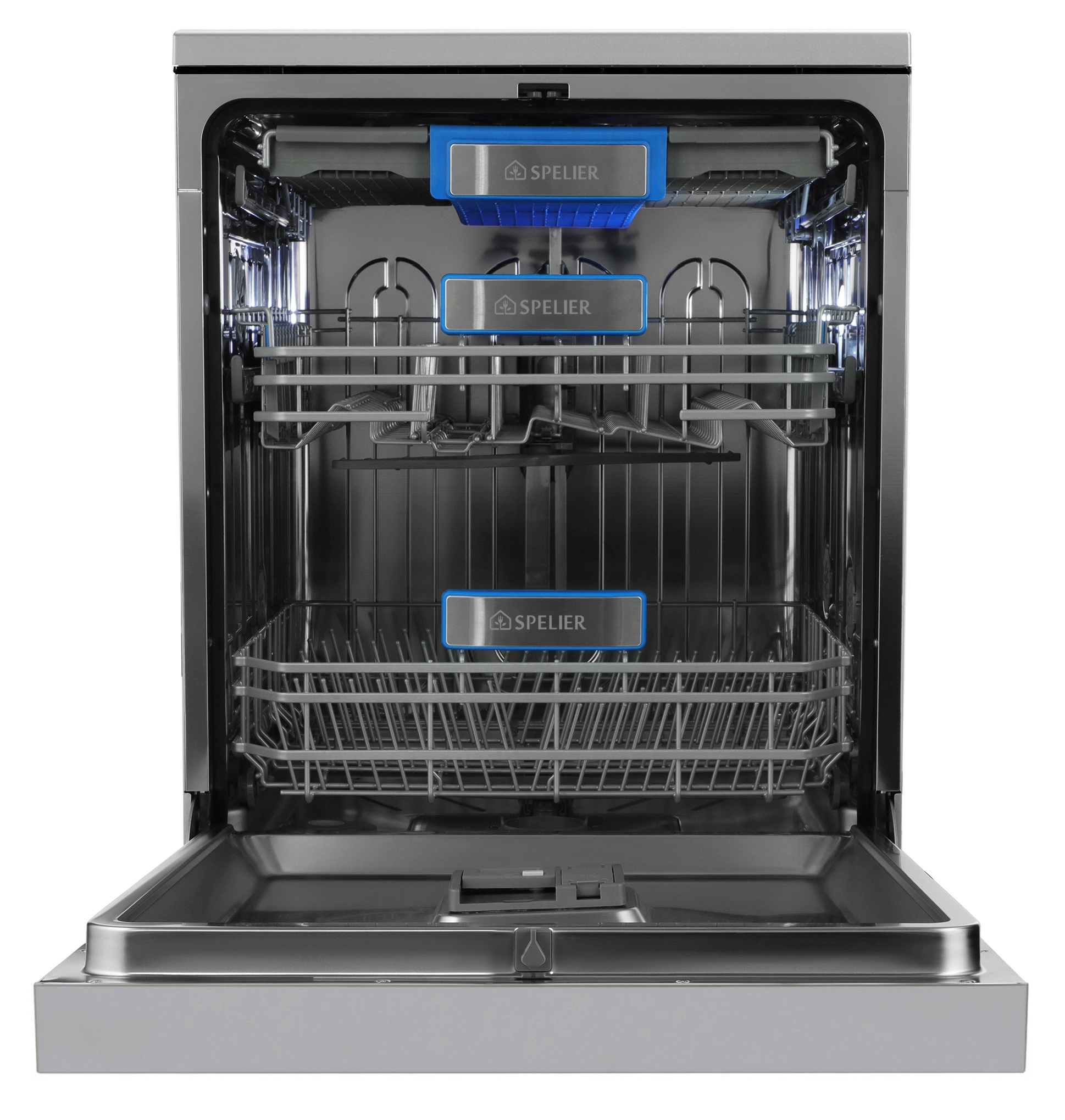 Máy rửa bát Spelier SP 16DWKT/S có công suất tiêu thụ từ 1800-2200W, lượng nước tiêu thụ là 4-10 lít/1 lần rửa, cho phép rửa 16 bộ bát đĩa Châu Âu tương đương với 1,5-2 bữa ăn Việt (gia đình 4-6 thành viên). Máy trang bị 10 chương trình rửa được tùy chỉnh dễ dàng trên bảng điều khiển điện tử kết hợp màn hình LED.