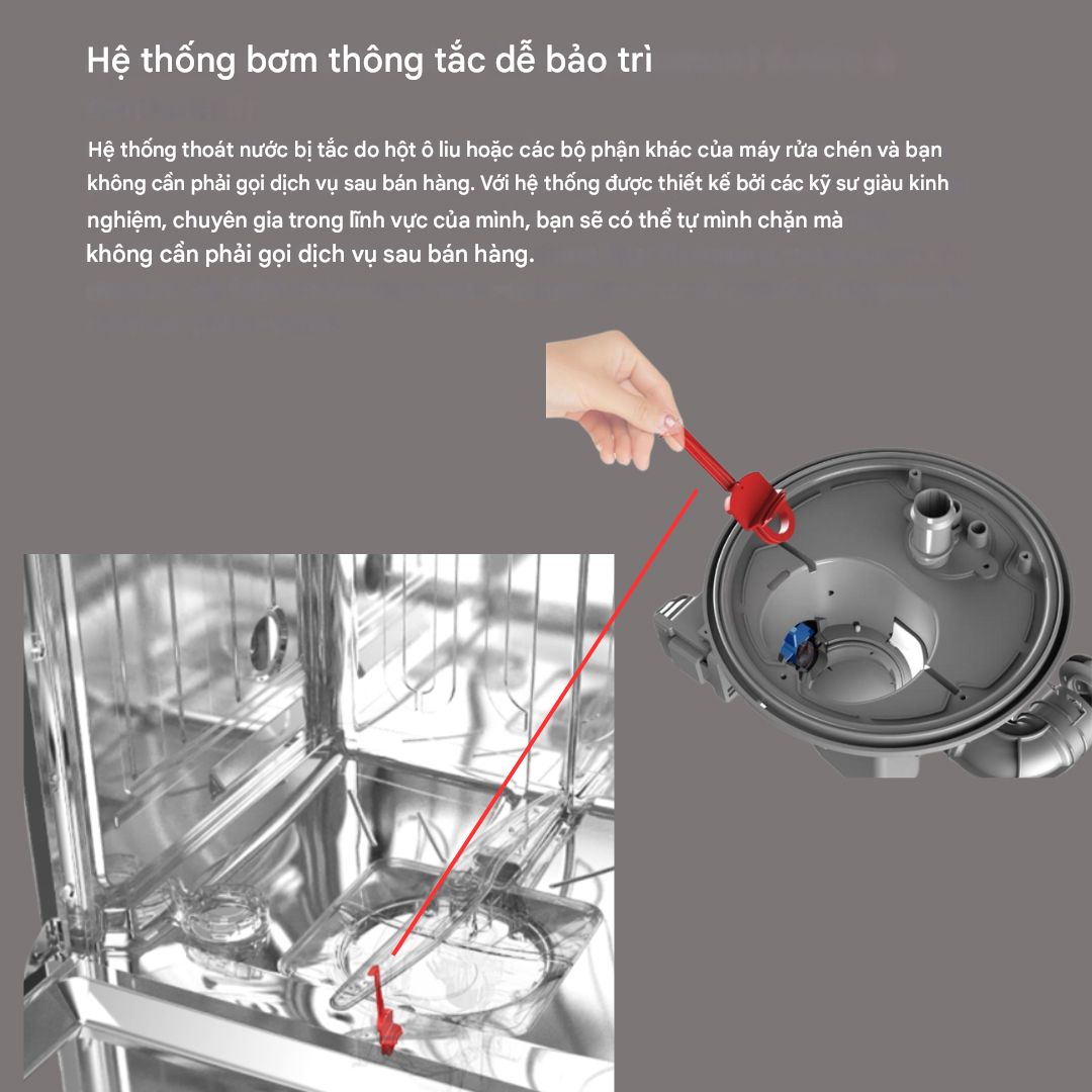 Hệ thống thoát nước có thể bị tắc do lõi lọc hoặc các bộ phận khác trong máy rửa bát của bạn, nhưng bạn sẽ không cần phải gọi dịch vụ hỗ trợ. Với hệ thống được thiết kế bởi các kỹ sư dày dạn kinh nghiệm và chuyên gia trong lĩnh vực, bạn có thể tự xử lý tình trạng tắc nghẽn mà không cần gọi dịch vụ hỗ trợ.