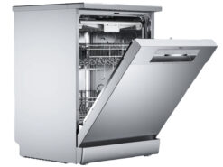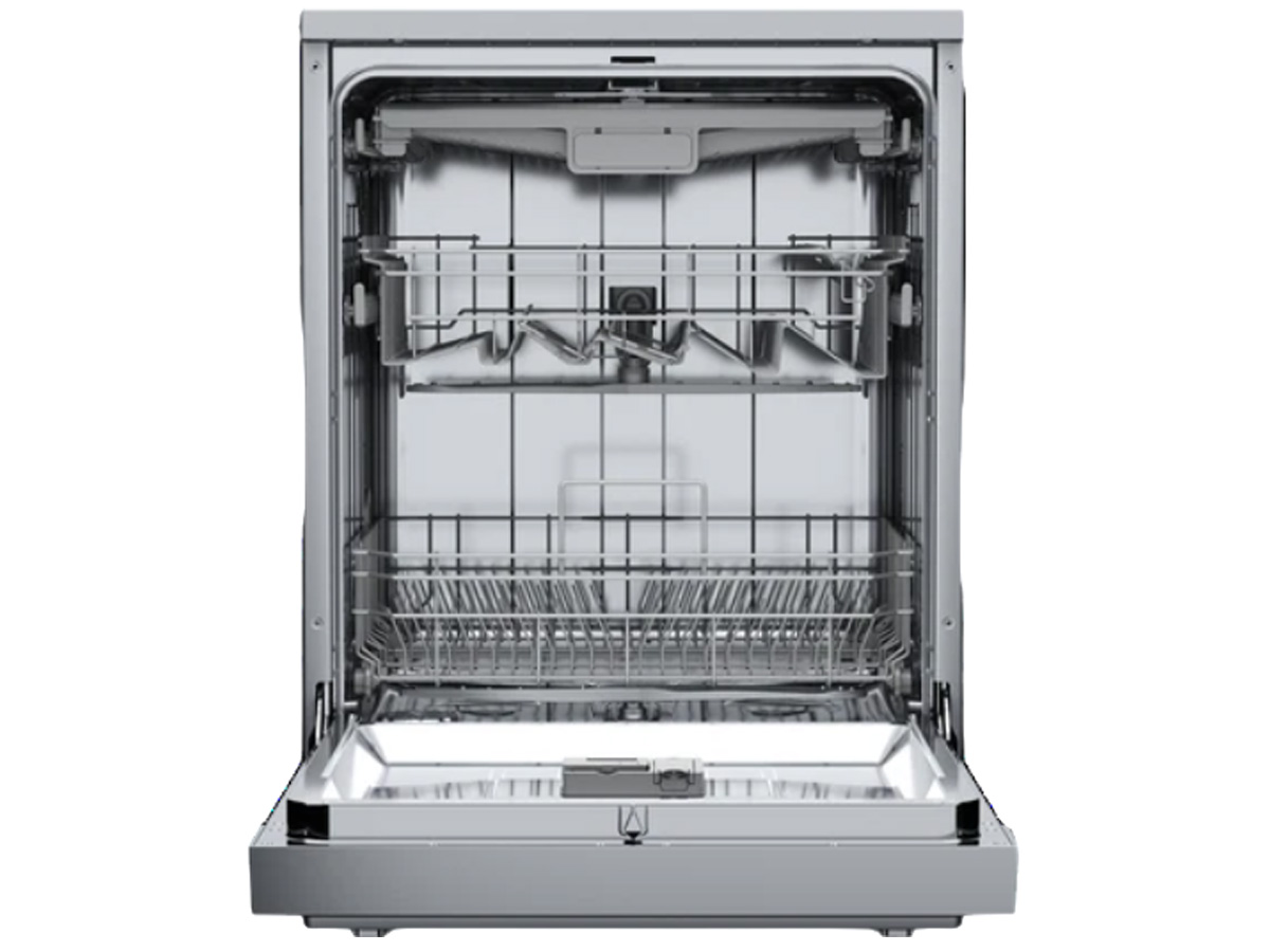 Máy có khả năng chứa lên đến 14 bộ chén đĩa trong một lần rửa, đáp ứng nhu cầu sử dụng của các gia đình lớn. Thiết kế đứng độc lập với màu thép không gỉ cao cấp, chống bám vân tay, giúp không gian bếp thêm phần sang trọng. Bảng điều khiển điện tử và màn hình LED hiển thị rõ ràng, dễ sử dụng.