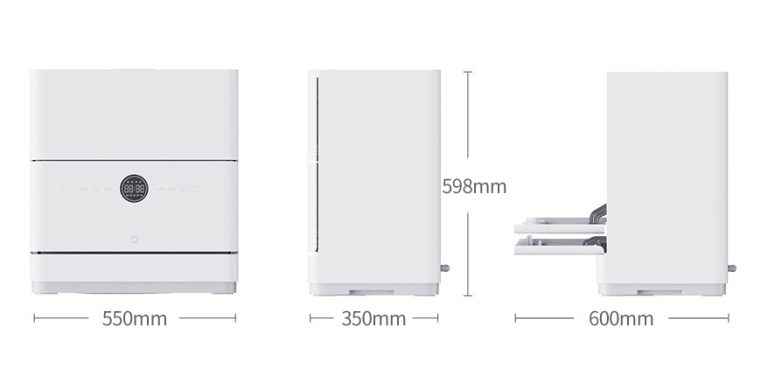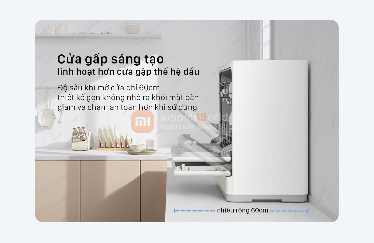 Máy rửa chén Xiaomi Mijia S1 5 bộ được thiết kế nhỏ gọn, sang trọng, chỉ chiếm 0,19m² không gian với kích thước 350mm sâu và 550mm rộng. Thiết kế cửa gấp sáng tạo giúp chiều sâu khi mở chỉ 600mm, tránh va đập và tiện lợi. Dù có kích thước nhỏ nhưng vẫn đảm bảo sức chứa tốt và hiệu quả làm sạch tối ưu.