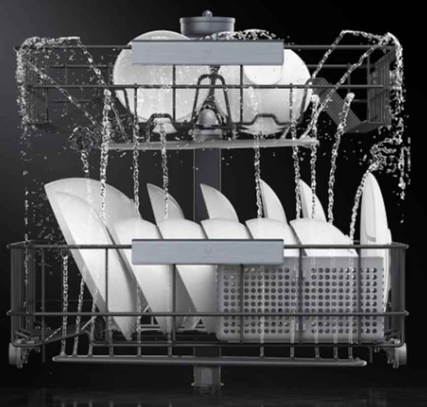 Sản phẩm được trang bị 4 vòi phun mạnh mẽ với 3 cánh nổi trên mỗi vòi, giúp loại bỏ hoàn toàn các vết bẩn hiệu quả. Nhờ tính năng này, việc rửa chén bát trở nên nhanh chóng, tiết kiệm thời gian và năng lượng mang lại sự tiện lợi và giảm thiểu việc rửa bằng tay cho người dùng.