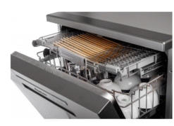 Khoang máy rộng rãi cho phép rửa đến 15 bộ bát đĩa châu Âu tương đương khoảng 3-4 bữa ăn của gia đình Việt 4 người giúp bạn thoải mái rảnh tay nghỉ ngơi, ngay cả khi nhà có tiệc liên hoan mà không phải chia làm quá nhiều lần rửa. 3 tầng giá xếp đồ tiện lợi, tối ưu hoá việc sử dụng không gian, xếp được nhiều bát đĩa hơn mà vẫn đảm bảo chất lượng và hiệu quả hoạt động của máy rửa bát. Giá xếp đồ linh hoạt cho phép điều chỉnh chiều cao của tầng giữa khoảng 5cm, tạo thêm không gian phù hợp với nhiều dụng cụ nấu ăn như nồi cao, đĩa rộng, hoặc chảo sâu quá khổ. Bên trong buồng chứa được làm bằng thép không gỉ chịu được nhiệt độ cao, không bị han gỉ và không tạo ra chất độc hại trong quá trình máy rửa bát hoạt động.