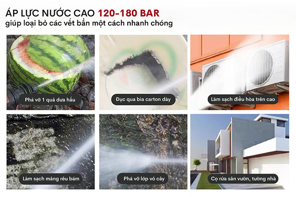 Với áp lực nước cao từ 120 – 180 bar, Fujihome PWX5B giúp loại bỏ và tẩy rửa các vết bẩn ở những vị trí khó thao tác như gầm xe, bánh xe một cách dễ dàng, nhanh chóng vừa tiết kiệm thời gian vừa tiết kiệm điện.