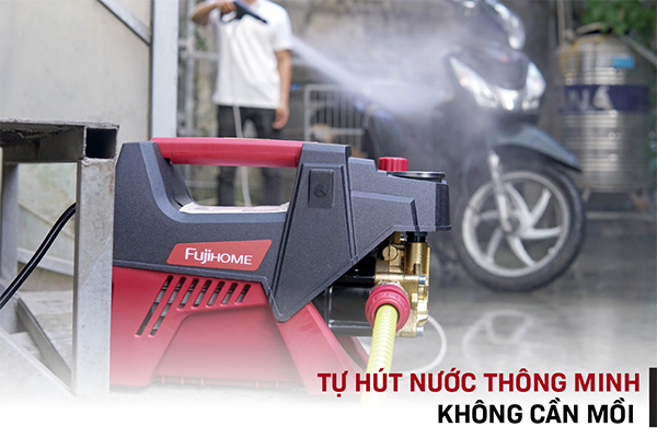 Máy rửa xe Fujihome PWX5B có khả năng tự hút nước thông minh mà không cần mồi, bạn chỉ cần cho dây cấp nước vào xô nước rồi bật công tắc là máy có thể tự hút nước và hoạt động bình thường. Motor của máy được làm bằng 100% dây đồng nguyên chất giúp vận hành lâu dài, bền bỉ mà không sợ bị nóng.