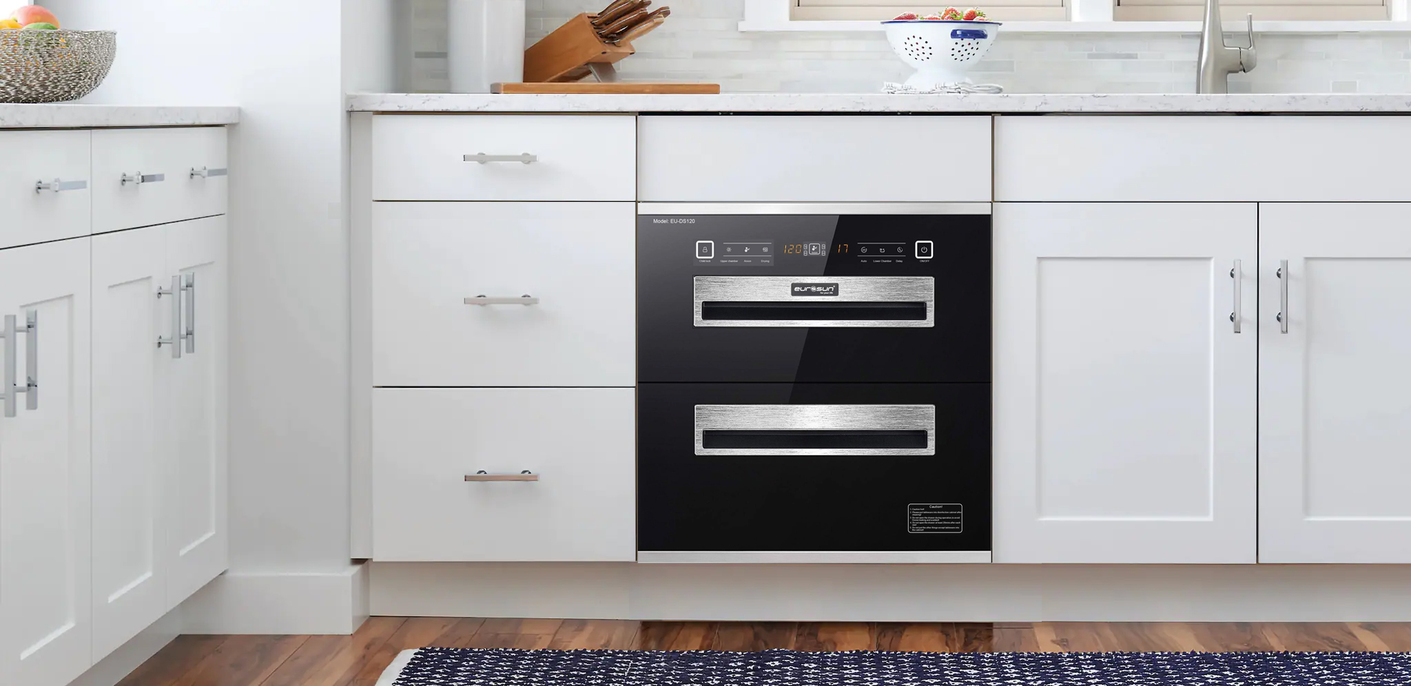 Máy sấy bát Eurosun EU-DS120 được thiết kế âm tủ với 2 ngăn chứa bát đĩa, có thể linh hoạt kéo ra khi sử dụng, rất tiện lợi cho cả người lớn và trẻ nhỏ, ray còn được bọc kín để bảo vệ cho khoang máy.