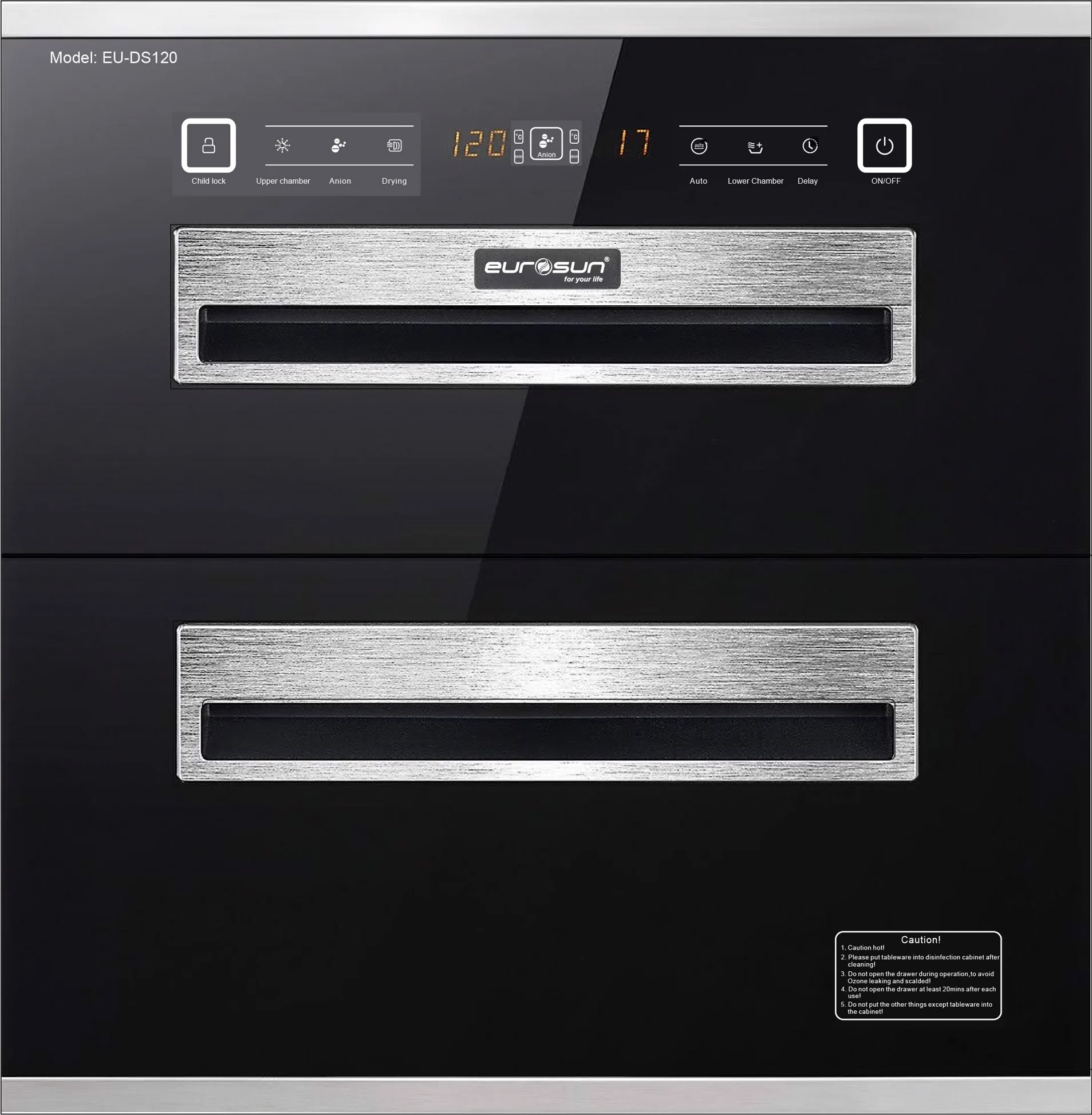 Với thiết kế âm tủ truyền thống, tối ưu hiệu quả sử dụng, máy sấy bát âm tủ Eurosun DS120 sử dụng mặt kính cường lực chất lượng cao cùng khả năng chống tia UV tuyệt đối, bảng điều khiển cảm ứng Digital toàn phần cùng 8 chức năng sử dụng linh hoạt…đây là một sản phẩm rất tiện dụng và hữu ích cho gia đình Việt.
