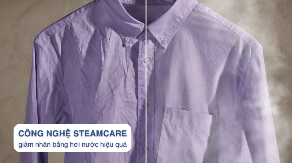 – Công nghệ SteamCare sử dụng hơi nước phun vào lồng trong toàn bộ quá trình sấy. Nhờ việc sử dụng hơi nước, quần áo phẳng hơn, sợi vải mềm mại và mịn màng hơn, giảm thiểu nếp nhăn, dễ dàng cho việc là phẳng khi cần thiết. Đồng thời, loại bỏ hiệu quả các mùi hôi khó chịu bám vào quần áo, mang lại cho bạn những bộ trang phục không chỉ sạch sẽ mà còn thơm mát hơn sau mỗi lần sấy.