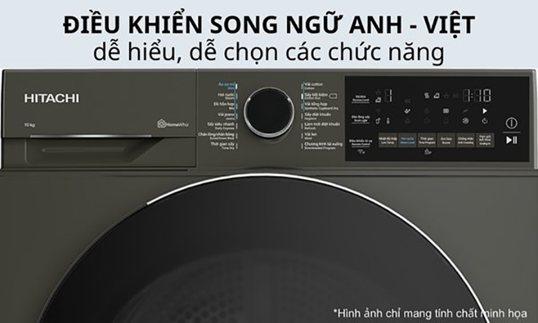 Với bảng điều khiển song ngữ Anh – Việt, giúp người dùng dễ dàng thao tác và lựa chọn các chức năng một cách rõ ràng, thuận tiện. Nhờ giao diện đơn giản và dễ hiểu, mọi thành viên trong gia đình,đều có thể sử dụng máy một cách dễ dàng và hiệu quả.