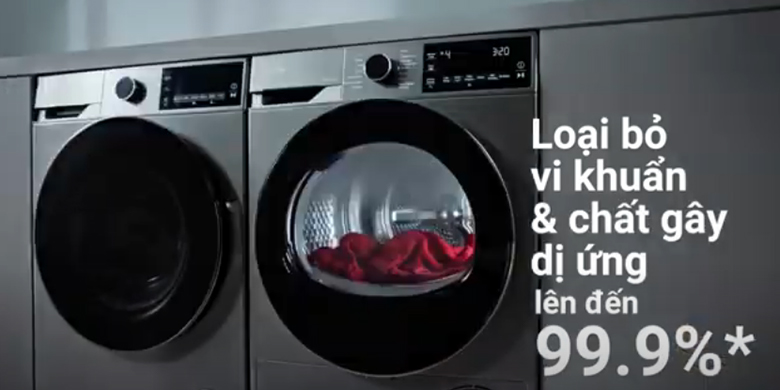Chương trình sấy vệ sinh Hygiene sử dụng nhiệt độ tối ưu để loại bỏ vi khuẩn và vi rút khỏi quần áo trong một chu trình sấy. Chương trình này không chỉ giúp bảo vệ sức khỏe mà còn giảm thiểu các chất gây dị ứng như lông thú từ mèo, chó, phấn hoa, vi khuẩn và nấm mốc. Nhờ đó, quần áo của bạn sẽ luôn sạch sẽ, dễ chịu, đồng thời bảo vệ làn da và hệ hô hấp của các thành viên trong gia đình.